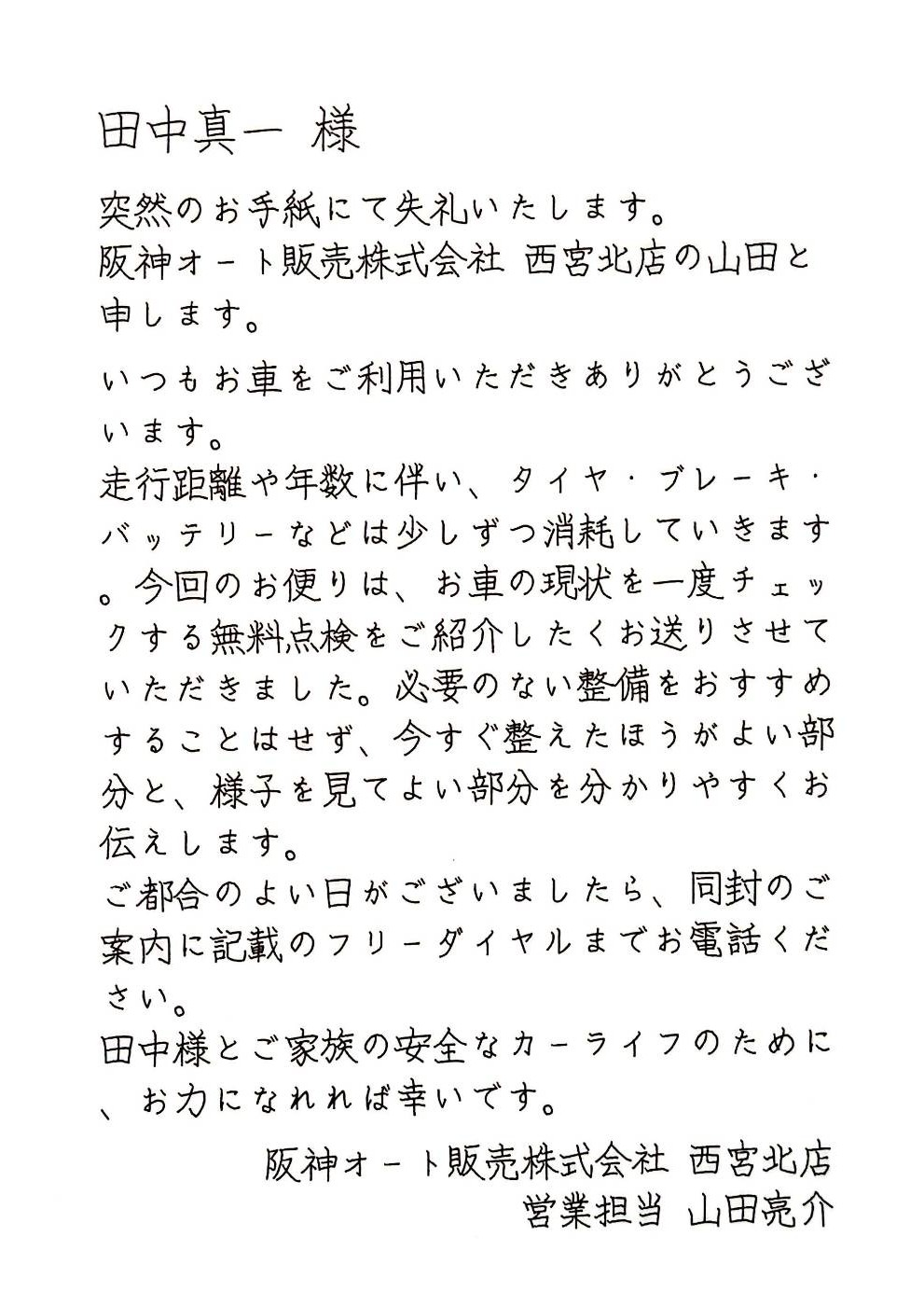 手書きレターで、安心して通えるディーラーの印象づくりを